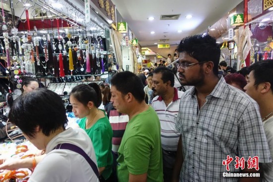 9月15日,幾位來(lái)自斯里蘭卡的游客慕名前來(lái)天意選購(gòu)商品。當(dāng)日,自1992年開(kāi)業(yè)至今的北京天意市場(chǎng)迎來(lái)其在北京西城阜外大街營(yíng)業(yè)的最后一日,商家趁機(jī)“瘋狂甩貨”,大批北京民眾也紛至沓來(lái)。這里曾是北京著名的小商品商城,聚集了數(shù)千家商戶(hù)。為疏解北京非首都功能,天意商城將于本月16日關(guān)門(mén)停業(yè)。中新社記者 崔楠 攝