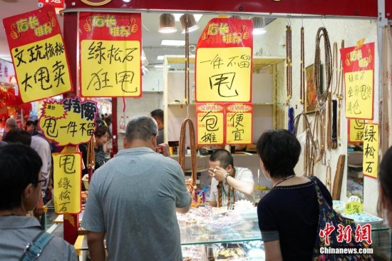 9月15日,市民齊聚天意批發(fā)市場(chǎng)中購(gòu)物。天意商城是北京規(guī)模最大的小商品批發(fā)兼零售市場(chǎng),為疏解北京非首都功能,天意商城將于本月16日關(guān)門(mén)停業(yè)。中新社記者 韓海丹 攝