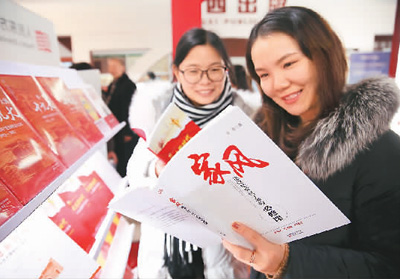 1月11日開幕的2018北京圖書訂貨會上發布了《2017年中國圖書零售市場報告》。報告稱,網上書店渠道依然是市場增長的主要推動力,實現了25.82%的增長。圖為讀者在圖書訂貨會上翻看圖書。W9F安康新聞網