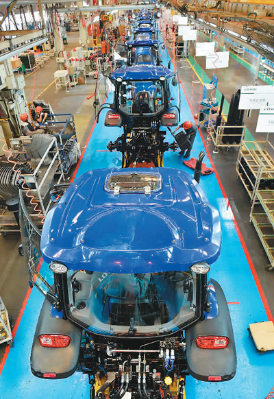 | 圖為位于山東濰坊的雷沃重工阿波斯拖拉機總裝車間的生產線。黨的十九大召開,明確以供給側結構性改革為主線,推動經濟發展質量變革、效率變革、動力變革,提高全要素生產率。 |