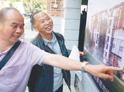 融水搬遷戶觀看千戶苗寨效果圖。TsK安康新聞網(wǎng)
