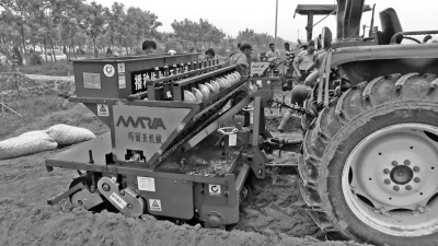 產業園應用的世界首臺智能大蒜精量播種機。