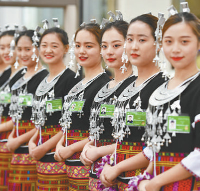 身著黎族服飾的博鰲亞洲論壇志愿者準備迎接嘉賓。DNx安康新聞網