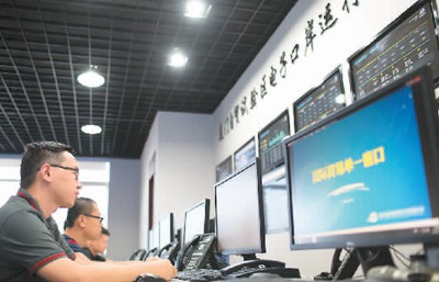 | 圖為工作人員在廈門自貿試驗區電子口岸運行監控中心監測運行數據。 |