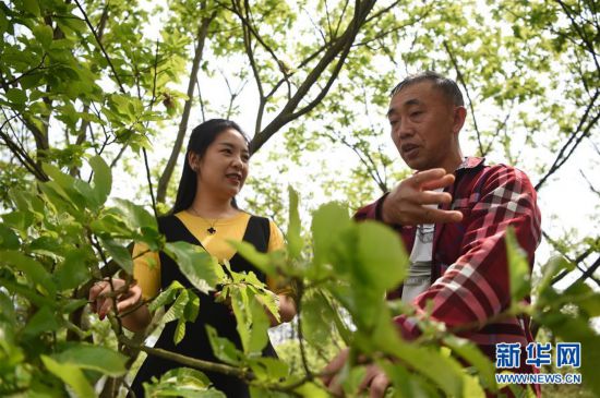 一位村民(右)在板栗種植園向魏先曼介紹今年的板栗種植情況(4月10日攝)。PsZ安康新聞網