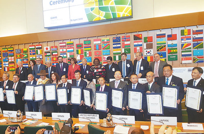 | 第五屆全球重要農業文化遺產國際論壇上獲世界重要文化遺產授牌的各國代表合影。 |