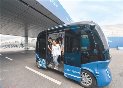 4月21日,中國首款商用級無人駕駛巴士在首屆數(shù)字中國建設峰會主會場——福州海峽國際會展中心亮相。4月22日至24日峰會舉辦期間,該巴士面向公眾開放試乘體驗。圖為市民在體驗無人駕駛巴士。