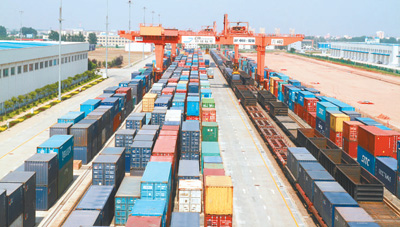 上個月,青島獲批創建中國—上海合作組織地方經貿合作示范區。站在青島多式聯運海關監管中心的大看板前,中鐵聯集青島分公司常務副總經理魏學倫自豪地說,青島加強與上合組織合作擁有獨特條件,最突出的就是“陸海空鐵”多式聯運的物流優勢。陸——有青島傳化智能公路港;海——世界知名港口青島港距離園區僅20公里;空——膠東國際機場明年將投入運營;鐵——青島多式聯運海關監管中心已開通中亞班列、中韓快線、中蒙班列、東盟專線、中歐(青島)國際班列。登上20多米高的軌道龍門吊車平臺,只見腳下一排排顏色各異的集裝箱如同五彩長龍靜臥在鐵道上,蓄勢待發。