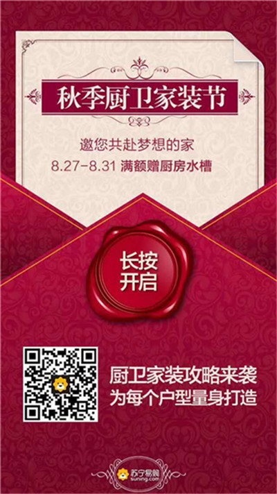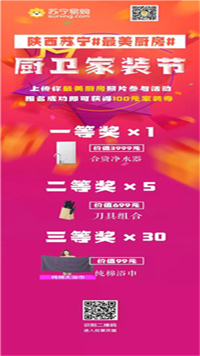 同時,陜西蘇寧秋季廚衛(wèi)家裝節(jié) “最美廚房”開賽啦,關(guān)注【陜西蘇寧】微信公眾號參與投票,即可獲得100元家裝券,同時還可獲得陜西蘇寧廚衛(wèi)家裝設(shè)計講堂現(xiàn)場參與資格。陜西蘇寧將邀請知名設(shè)計師現(xiàn)場講授廚衛(wèi)家裝專業(yè)知識,讓您的廚房更美更安全(8.31蘇寧易購廣場店、9.7蘇寧易購金花店、9.8蘇寧易購張家堡店)。