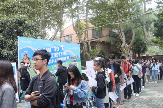 隨著2019年“1200工程”十七期校園招聘全球啟動發布會9月9日在蘇寧易購集團總部所在地南京落下帷幕,9月17日,蘇寧集團在西安交通大學興慶校區開展了“1200工程”十七期校園招聘會,此次招聘宣講會吸引了大量西安學子的關注,現場座無虛席,300個座位,到場500多位同學。這也從側面映射出蘇寧的“智慧零售”被越來越多的學子所認可,大家都想在蘇寧的大舞臺上一展風采。