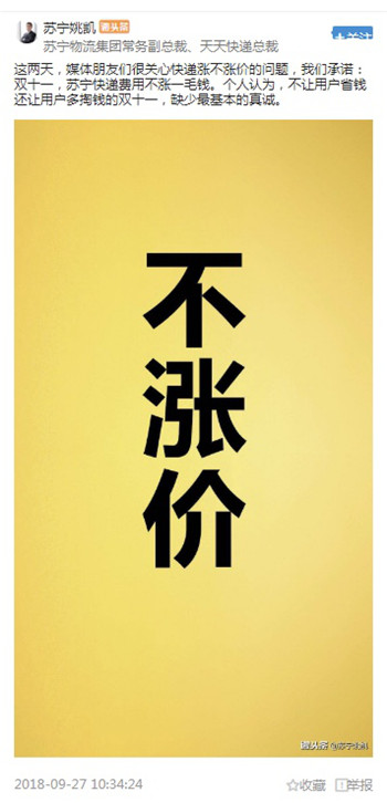 雙十一前快遞紛紛漲價,蘇寧高管發聲:不漲一毛錢