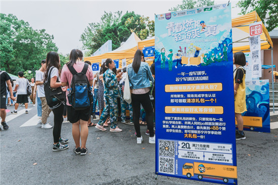 活動當日,蘇寧同今日校園一道、在南京農業大學的大學生活動中心門口,早早支起了活動帳篷、準備好了軍訓清涼禮包,迎接軍訓生的到來。