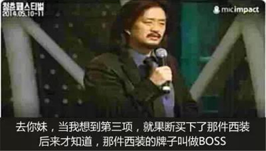 買了之后,僅剩的5萬韓元不夠住宿費了。和旅店老板商量,去車站拉客人,來5個客人以上就按人頭給他提成。結果,boss哥拉來了30多號人,一周之后,提成拿了50萬韓元。為什么?因為boss哥穿boss西裝埃