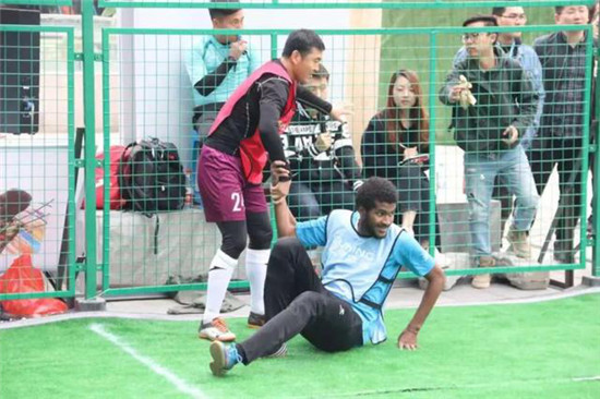 下半場更是熱血沸騰,比賽進入了白熱化階段。但外國戰隊Pilucas成員摔倒后,對手卻立即上前扶起。