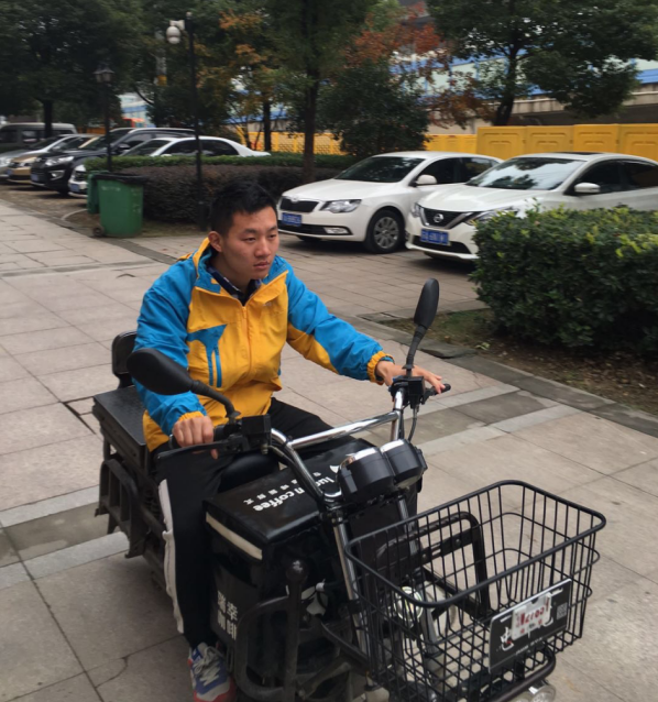 潘俊趕忙將咖啡放到門衛(wèi)室,跑過去攙扶生病的學(xué)生。考慮到送學(xué)生去最近的醫(yī)院也要有一段時間,潘俊在保安的幫助下,將生病男生抱上快遞車,一路騎車將其送到了醫(yī)院。