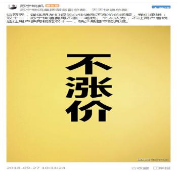 雙十一前快遞紛紛漲價,蘇寧高管發聲:不漲一毛錢