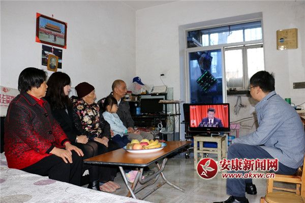 在前張嶺社區“全國幸福家庭”趙艷作家,屋子里熱熱鬧鬧,洋溢著滿滿的幸福。一家6口人,四輩兒人,穿戴整齊,齊齊圍坐在電視機前,收看著十九大開幕會盛況。“擼起袖子加油干!”是看大開幕會給他們最直觀的感受。在江北辦機關,小小的視頻會議室坐滿了黨員,觀看著十九大開幕會盛況。現場,廣大黨員還不時就“十九大”中的新提法、新內容以及民生問題,進行了相互交流探討,細心解讀。大家認為,習近平總書記的報告全面、深刻、振奮人心,讓基層的廣大干部群眾歡欣鼓舞,充滿期盼。