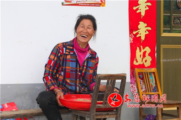 面對鏡頭,劉昌榮旁邊的“年年好”三個字與她的笑臉是那么的貼切。