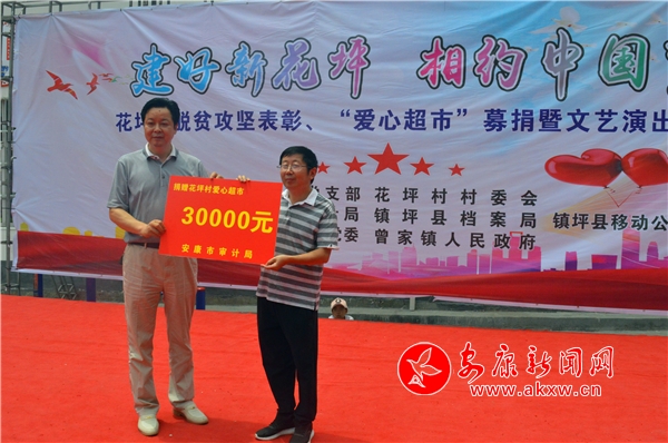 安康新聞網訊(通訊員 陳東青)7月26日上午,鎮坪縣曾家鎮花坪村人聲鼎沸,比三伏天的酷暑更加火熱,比過春節的氣氛更加熱烈。由市審計局、鎮坪縣檔案局、縣移動公司等市縣幫扶部門協辦的花坪村脫貧攻堅表彰大會暨愛心超市募捐活動正在村委會前的活動廣場舉行。會上對花坪村的“致富帶頭人”“勤勞致富模范”等脫貧攻堅和“五凈家庭”“孝老愛親模范”“好媳婦”“優秀共產黨員”等踐行新民風典型進行了表彰獎勵。活動現場還為村上愛心超市募集捐款10.4萬元。