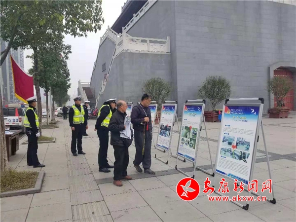 全國交通宣傳日江北交警隊在西城閣進行安全宣傳并發放安全宣品。
