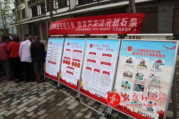 營(yíng)造濃厚宣傳氛圍。安排專(zhuān)人利用宣傳車(chē)常態(tài)化在城區(qū)、鎮(zhèn)村沿線巡回播放掃黑除惡音頻,利用2塊公共場(chǎng)所大型LED持續(xù)播放掃黑除惡宣傳片、標(biāo)語(yǔ)等,通過(guò)“法治石泉”微信、微博推送掃黑除惡工作動(dòng)態(tài)及應(yīng)知應(yīng)會(huì)知識(shí)等,大力宣傳掃黑除惡的重要意義、重大成果、舉報(bào)途徑等,為掃黑除惡專(zhuān)項(xiàng)斗爭(zhēng)深入開(kāi)展?fàn)I造濃厚氛圍。
