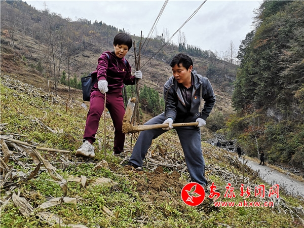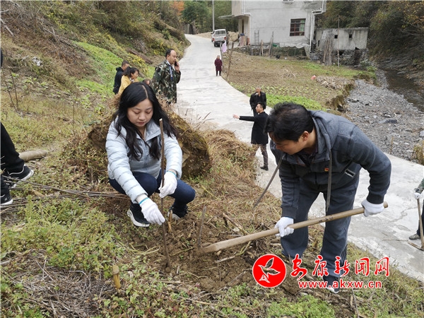 這些栽樹的人,是剛剛從安康城區趕來的市審計局的黨員干部。當日,該局專門來到花坪村,開展“初心不改、使命不怠,種下希望、成就夢想” 第十次主題黨日活動,用自己的雙手為花坪村栽上拐棗樹苗,用實際行動推進“不忘初心 牢記使命”主題教育深入開展,用為民辦實事的務實做法踐行初心和使命。