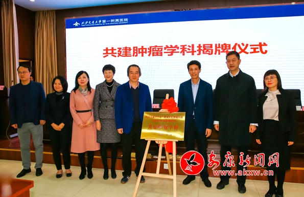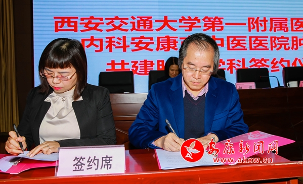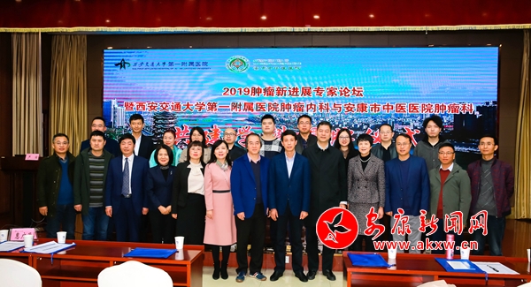 本網(wǎng)訊 (通訊員 嚴麗 奚穎)11月1日上午,2019腫瘤新進展專家論壇暨西安交通大學第一附屬醫(yī)院腫瘤內(nèi)科與安康市中醫(yī)醫(yī)院腫瘤科共建學科揭牌儀式在安康舉行。安康市保健辦主任陳少甫出席揭牌儀式并致辭。西交大一附院腫瘤內(nèi)科李恩孝主任、楊謹主任、姚煜主任等專家教授,安康市中醫(yī)醫(yī)院李東波副院長、腫瘤科主任嚴麗及團隊參加儀式。李恩孝代表一附院腫瘤內(nèi)科與市中醫(yī)醫(yī)院腫瘤科嚴麗簽署了共建腫瘤學科協(xié)議,并為兩院共建學科揭牌。