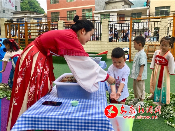 本網訊(通訊員 楊婷 劉榮好)濃濃艾草香,暖暖端午情。為傳承和弘揚優秀傳統文化,讓孩子們了解、感受端午節豐富的文化內涵。6月2日,旬陽市赤巖鎮中心幼兒園開展了“品味端午 傳承文明”系列主題活動,演繹了一場傳統文化的“盛宴”。