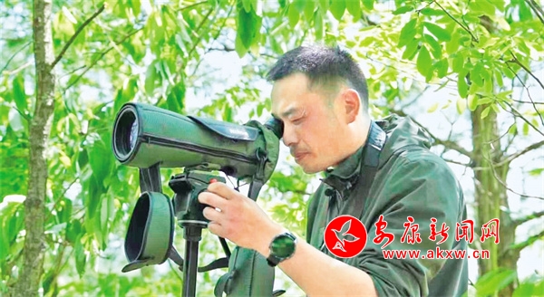 李夏正在野外觀察朱鹮孵化情況 楊穩(wěn) 攝ijV安康新聞網(wǎng)