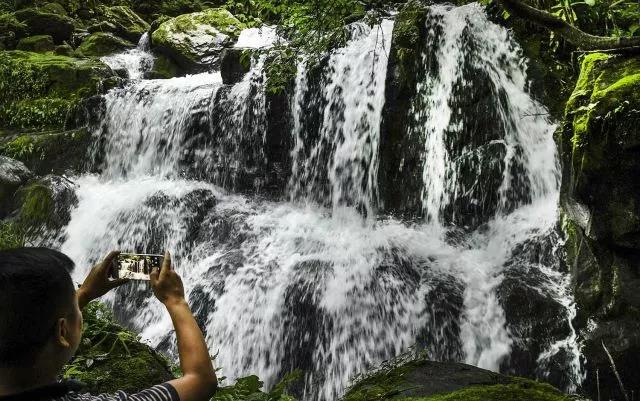 7月7日,游人在瀑布前拍攝。新華社記者陶明 攝x5p安康新聞網