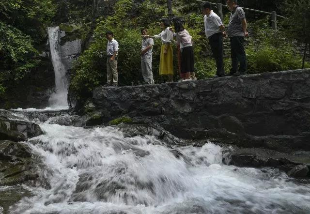 游人在最大的翹俏瀑布前觀賞。新華社記者陶明 攝