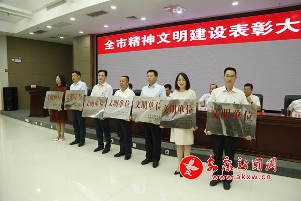 會議表彰了精神文明建設先進集體和文明家庭。寧陜縣、紫陽縣、市審計局、白河縣西營鎮作了交流發言。