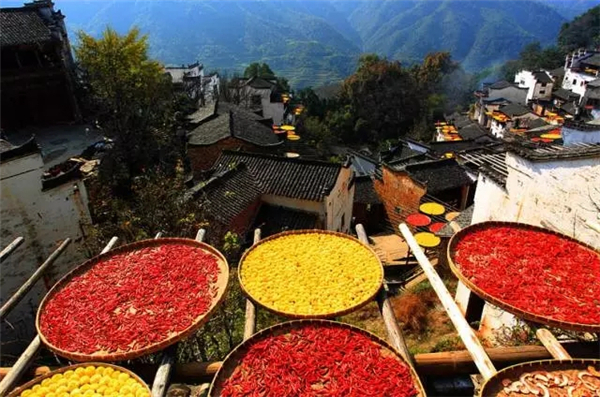在湖南、江西、安徽等山區(qū),有“曬秋”習(xí)俗。因?yàn)槠降厣伲r(nóng)民便利用自家窗臺(tái)、房頂架曬或掛曬農(nóng)作物。“曬秋”的秋不僅指秋天,更寓意著豐收和收獲的果實(shí)。