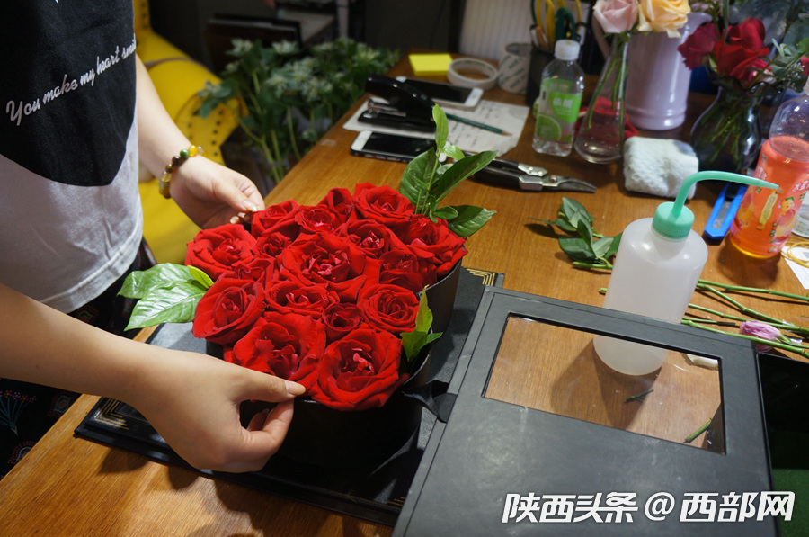 她說當日花店已經接受五十余人預定,真正的客流高峰在情人節當天,主要以紅玫瑰為主,乒乓菊、百合、向日葵、繡球等品種也受到年輕人的青睞。當初頂著家人反對,只為能給親人送上新鮮的鮮花,讓寧陜的鮮花市場種類更加豐富的屹楨,白天在公司上班,只有利用下班后的三四個小時才能打理花店。