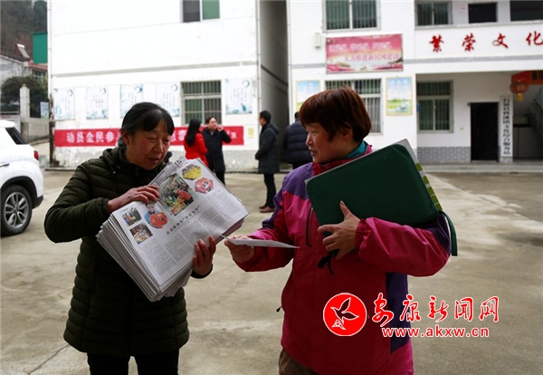 下午3點多走到聯盟村,趙明翠剛把報紙送到村上。村醫葉平菊就熱情地拉著趙明翠的手說:“山里好多群眾都搬到集中安置點安居了!村衛生室都專門聘請的有醫生了!農村婦女都能免費體檢、免費領取相關婦科藥品了!”趙明翠說:“這要感謝黨和國家的好政策!”