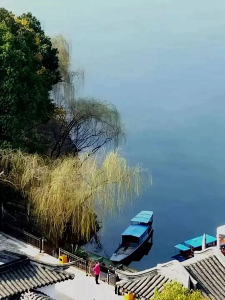 這是瀛湖和春天的約定。在玉興島,在金螺島,在翠屏島,在每一處不知名的水域,在每一戶綠楊煙柳掩映的人家,春天帶著原始的氣息撲面而來。那些人文元素,與春光春水悄然應(yīng)答,在每一塊青石板上,在每一座露臺里。變化中的瀛湖,湯池里都是春天的光線,靜靜映照著瀛湖一年的奔跑和余韻。