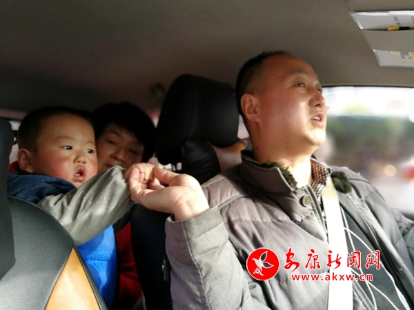 當天,赫赫感冒有點不舒服。在回安康的路上,胡珂像之前孩子更小一些的時候,在他哭鬧時捏著孩子的小手安慰他。記者 陳俊 攝