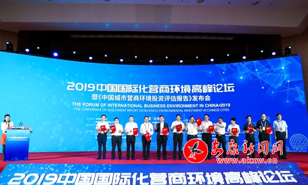 本網(wǎng)訊(通訊員 鄒亞康)7月2日,由《環(huán)球時(shí)報(bào)》社、中國(guó)民營(yíng)經(jīng)濟(jì)國(guó)際合作商會(huì)聯(lián)合主辦的2019年中國(guó)國(guó)際化營(yíng)商環(huán)境高峰論壇暨《中國(guó)城市營(yíng)商環(huán)境投資評(píng)估報(bào)告》發(fā)布會(huì)在北京舉行,安康市在會(huì)上被授予“中國(guó)營(yíng)商環(huán)境質(zhì)量十佳城市”稱(chēng)號(hào)。市長(zhǎng)趙俊民應(yīng)邀出席發(fā)布會(huì)并作推介。
