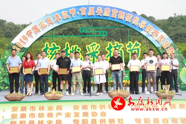 本網訊(記者 陸青波)8月19日上午,“2019中國農民豐收節·首屆安康富硒核桃采摘開園活動”在旬陽縣白柳鎮千畝核桃產業園區舉行。副市長魯琦宣布活動啟動。