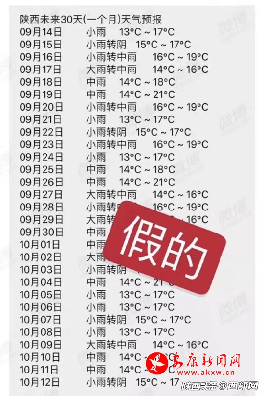 本網(wǎng)訊 這兩天,一張“陜西未來30天的天氣預報”圖片,在陜西人的朋友圈流傳。