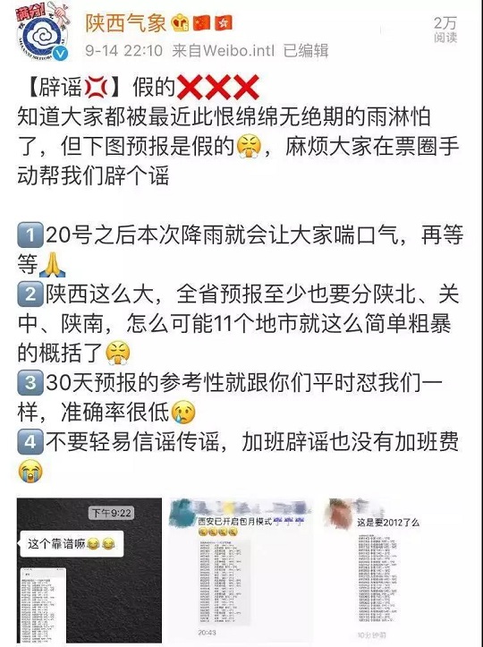 昨天晚上,陜西氣象官方微信對這一圖片進行了辟謠。