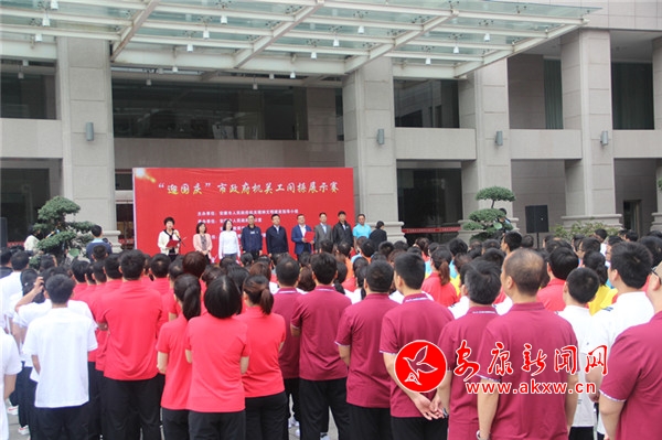 本網訊(通訊員 羅馬 李希明)9月21日上午,由市政府機關精神文明建設指導小組主辦,市政府辦、市教育體育局承辦,市體育運動服務管理中心協辦的“迎國慶”市政府機關工間操展示賽在市政府舉辦。市委常委、市政府副市長劉建平出席開幕式,市政府秘書長、市政府機關精神文明建設指導小組組長陳伍文致開幕辭。