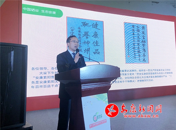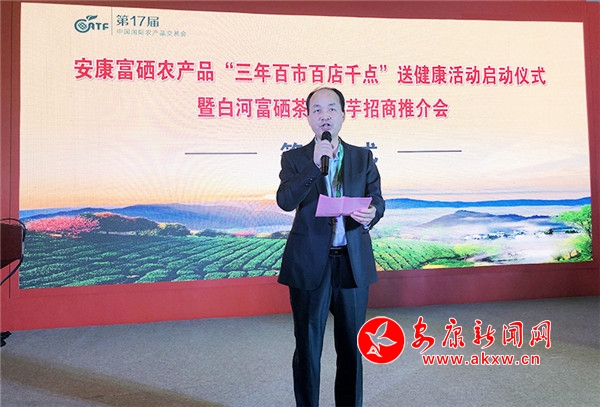 魯琦從生態(tài)環(huán)境、資源稟賦、區(qū)位優(yōu)勢等方面介紹了安康市情和現(xiàn)代農(nóng)業(yè)發(fā)展情況,重點推介了安康富硒茶、富硒魔芋等特色富硒農(nóng)產(chǎn)品。他表示,安康被譽為“世界硒源、中國硒谷”,天然富硒土壤生長出來的富硒農(nóng)產(chǎn)品,是人體天然補硒、健康養(yǎng)生的最佳途徑。依托天然富硒資源優(yōu)勢,全市正聚焦富硒產(chǎn)業(yè)綜合產(chǎn)值2000億元目標(biāo),全力打造“世界硒源地,國際健康城”。舉辦本次活動旨在搭建經(jīng)貿(mào)交流平臺,讓更多的人認(rèn)識安康,共享安康富硒茶、富硒魔芋等優(yōu)質(zhì)富硒農(nóng)產(chǎn)品。魯琦向在場100余位當(dāng)?shù)乜蜕碳吧鐣鹘绨l(fā)出誠摯邀請,真誠期待和歡迎各界人士到安康投資富硒產(chǎn)業(yè),共建全國富硒產(chǎn)業(yè)之鄉(xiāng)、齊為人類健康服務(wù)。