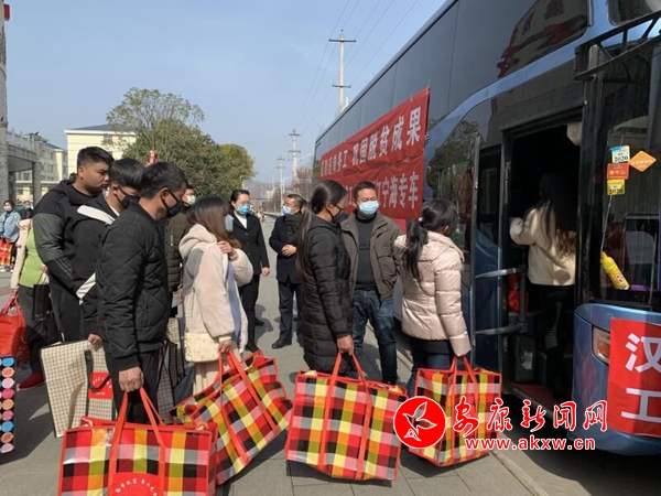 白河縣31名貧困勞動(dòng)力統(tǒng)一乘車前往江蘇常州、蘇州、鎮(zhèn)江返崗務(wù)工。