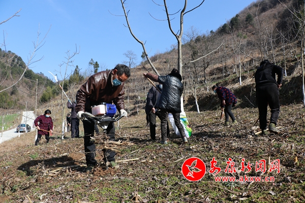 3月4日,安康市漢濱區葉坪鎮椒溝村7組一派忙碌景象,村里群眾正在核桃園區加緊為核桃樹修枝、上肥。bQ3安康新聞網