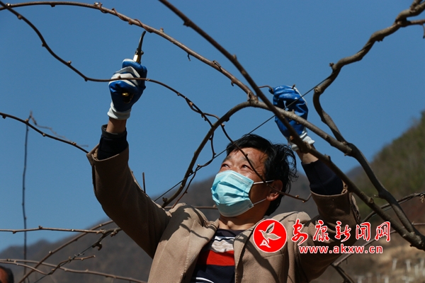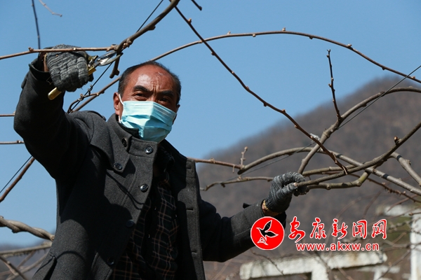 3月4日,安康市漢濱區葉坪鎮中心社區貧困戶正在獼猴桃園區內加緊修枝。 bQ3安康新聞網