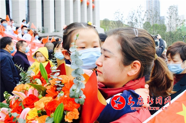 和唐小粉一樣,冉仁玉的丈夫張勇也一直盼著重逢這一天,“這段時間,幾乎是掰著指頭過”。他說,妻子當時做出支援武漢的決定時,沒有和家人商量,走了之后,大家問他“怎么回事,那么危險的地方,你讓老婆去,萬一出了事怎么辦”,他每天心里都繃著一根弦。“幸運的是,今天她平安健康回來了,我也如釋重負,現在特別放松、特別高興。”