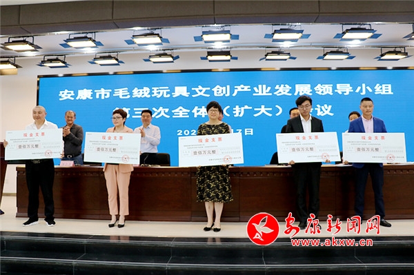 會上,恒安玩具等5家龍頭企業獲得毛絨玩具文創產業發展獎勵資金各100萬元。