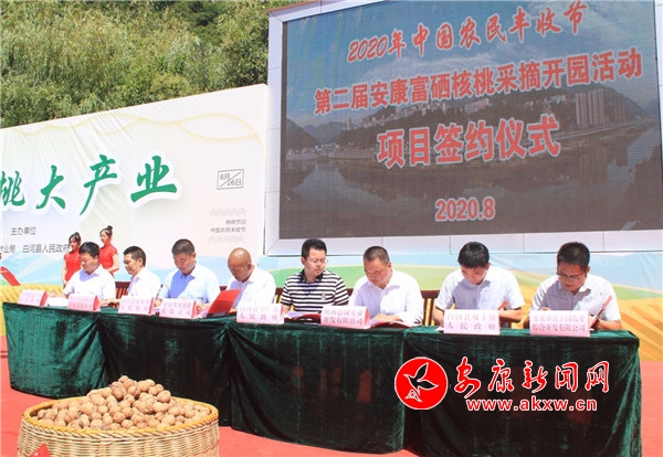 本網訊(記者 吳單 張喬) 8月26日上午,2020中國農民豐收節·第二屆安康富硒核桃采摘開園活動在白河縣冷水鎮三院社區舉辦。副市長魯琦出席并宣布活動啟動。