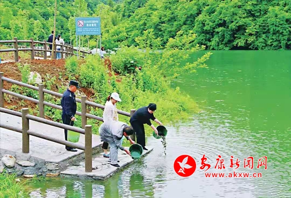 “桃花島”放生魚苗   沈沙沙 攝c3M安康新聞網